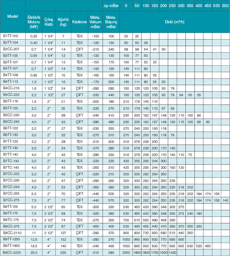 В таблице ниже показан расход воздуха, обеспечиваемый различными моделями вентиляторов в зависимости от мощности двигателя.