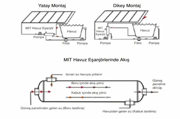 Пульсационные теплообменники MIT могут использоваться как в солнечных, так и в котельных системах для равномерного нагрева бассейна, принимая тепло из центрального котла.